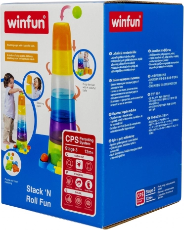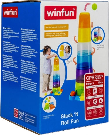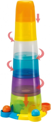 Věž s kuličkami WINFUN přináší dětem hodiny aktivní a smysluplné zábavy. Z šesti pevných, barevných kelímků dítě snadno postaví věž vysokou až 65 cm. Po dokončení stavby stačí vhodit kuličku do horního otvoru a sledovat, jak spirálou klouže až na dno – to udrží pozornost a motivuje ke zkoušení znovu a znovu.