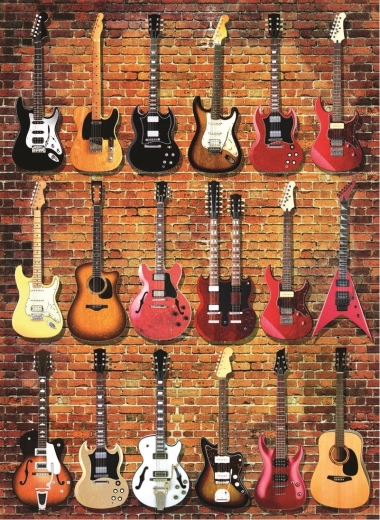 Toto stylové puzzle s hudebním motivem potěší každého milovníka skládání i fanoušky kytar. Díky praktickému stojánku můžete použít víko krabice jako přehlednou předlohu, což zpříjemní a zrychlí skládání. Po složení vznikne dekorativní obraz o rozměrech cca 48 × 66 cm, ideální k zarámování.