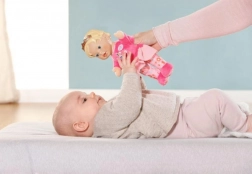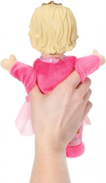 Princeznička BABY born for babies je ideální první panenkou pro miminka a batolata. Hebké tělíčko láká k tulení, zatímco lehká vinylová hlavička se zlatou korunkou dodává hračce královský vzhled. Integrované kapsičky v rukou promění panenku v maňáska – stačí vsunout prsty a začít vyprávět příběhy.