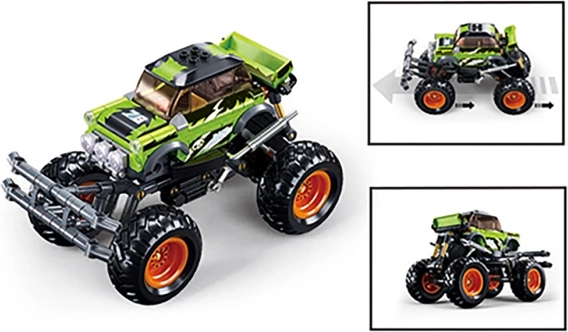 Stavebnice Sluban Bigfoot Green přináší skvělou kombinaci kreativního stavění a akční hry. Díky natahovacímu mechanismu stačí model potáhnout dozadu a monster truck vyrazí vpřed. Robustní design, výrazné barvy a detailní zpracování dělají z tohoto modelu perfektní volbu pro malé milovníky terénních aut.