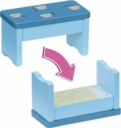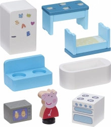 Součástí sady je figurka Peppy a nábytek: vana, lednička, sporák, TV, patrová postel a pohodlná dvojsedačka pro neomezené příběhy.