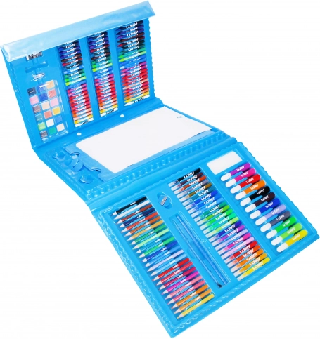 Kompletní výtvarná sada 208 ks v praktickém kufříku pro malé i velké tvůrce. Obsahuje olejové pastely, pastelky, fixy, voskovky i akvarelové barvy a bohaté příslušenství pro kreslení a malování doma, ve škole i na cestách.