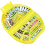- 12 fixů, 12 voskových pastelů, 6 pastelek, 12 vodových barev, 1 pravítko, 2 tužky, 1 štětec, 1 guma, 1 strouhátko, 1 nůžky