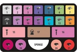 - Paletka 14 očních stínů, 2 odstíny růže, pudr a 4 lesky na rty