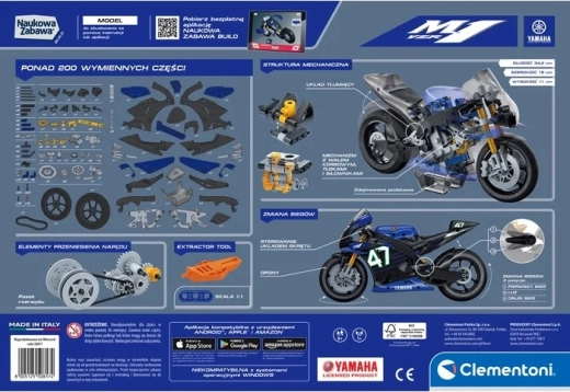 Objevte svět techniky se stavebnicí Laboratorio di Meccanica – Yamaha M1. Tento detailní model závodní motorky z MotoGP spojuje zábavu se vzděláváním: pochopíte, jak funguje převodovka, odpružení i přenos síly řetězem. Díly jsou navrženy pro pevnou konstrukci a autentický vzhled.