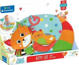 Různorodé textury potahu stimulují hmat, šusticí kotě a kočičí fousky povzbuzují zvídavost a koordinaci, zatímco plastové srdíčko na poutku slouží jako praktické kousátko při prořezávání zoubků. Polštářek je snadno udržovatelný – lze jej prát na jemný program.