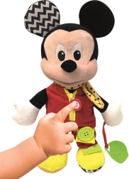 Tato měkoučká hračka v podobě oblíbené postavičky MICKEY je navržena tak, aby děti motivovala k přirozenému učení hrou. Různé textury a materiály probouzejí hmat, zatímco jednoduché úkony jako zapínání zipu nebo zapnutí knoflíku rozvíjejí koordinaci oko–ruka a trpělivost.