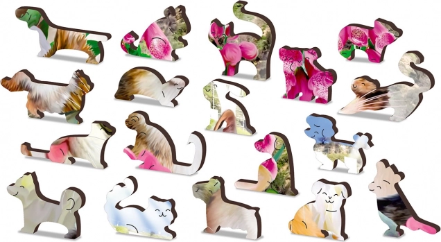 Každý dílek je pečlivě vyřezán laserem a nabízí tvary zvířat nebo objektů, které lze použít i jako samostatné figurky.