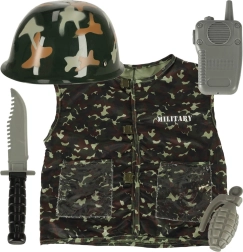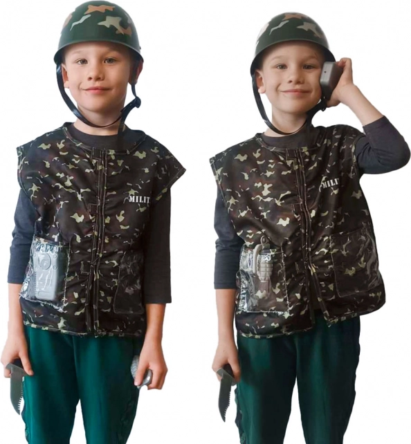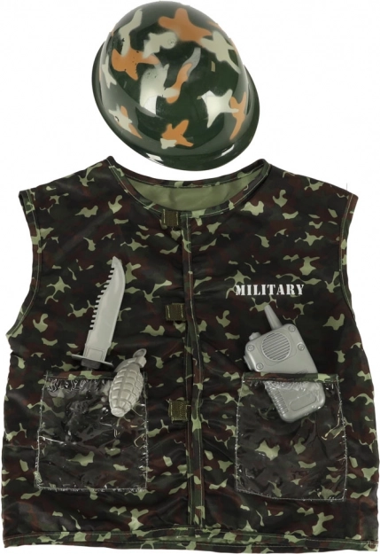 S tímto vojenským kostýmem se vaše dítě bude cítit jako skutečný voják. Kostým se skládá z maskovací vesty a vojenské přilby a je navržen tak, aby vydržel i ty nejdivočejší hry.