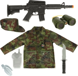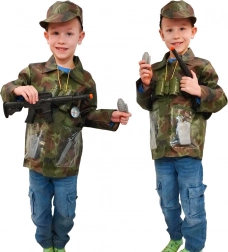 Kostým vojenské uniformy je ideální pro báječný čas na maškarním plese nebo jen tak pro oživení každodenní hry. Díky této soupravě se dítě může stát statečným vojákem, ať už doma nebo na školní akci. Kostým je vyroben z pohodlného materiálu, který je vhodný pro děti od 3 do 8 let.
