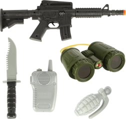 Souprava obsahuje plastové doplňky jako je zbraň, nůž, vysílačka a další, pro realistickou hru a rozvoj fantazie.