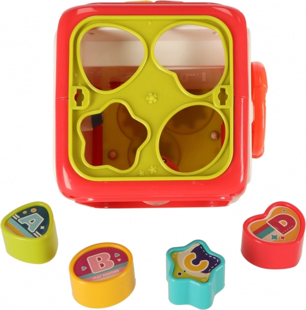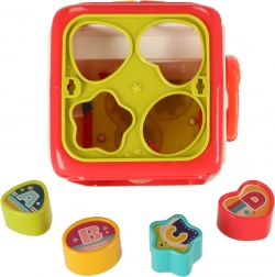 - Skládá se z kostky a čtyř bloků, které podporují rozpoznávání tvarů a barev.