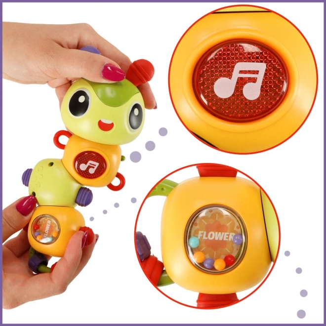 Tento pestrobarevný housenka umožňuje dětem objevovat svět prostřednictvím šťastných melodií a světelných efektů.