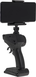Ergonomický pistolový ovladač zajišťuje stabilní dosah a přesné řízení. Integrovaný držák bezpečně upevní smartphone pro pohodlné sledování obrazu.
