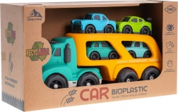 Zábavná odtahovka s přívěsem a čtyřmi autíčky z ekologického BIO plastu potěší děti od 18 měsíců. Nabízí světelné efekty, reálné zvuky motoru, couvání a klakson i vesele melodie. Přívěs lze odpojit a robustní materiál je bezpečný, netoxický a odolný. Baterie 3× LR44 jsou součástí balení.