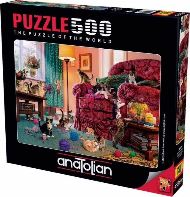 Užijte si chvilky klidu se sadou puzzle ANATOLIAN nezbedná koťata. 500 dílků s přesným výřezem potěší začátečníky i zkušenější skládače a přehledný stojánek na víko krabice slouží jako praktická předloha při skládání. Po dokončení sestavy získáte obrázek o velikosti přibližně 48 × 33 cm, který vynikne doma i v kanceláři.