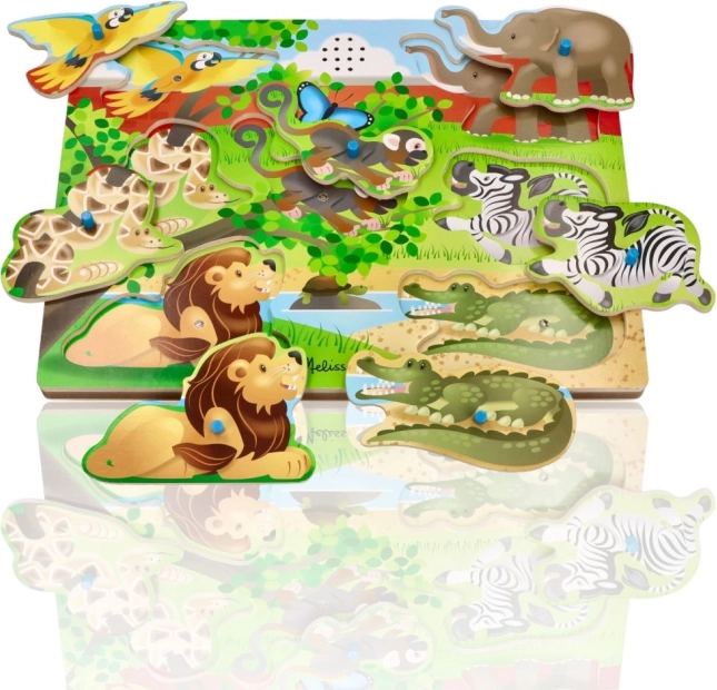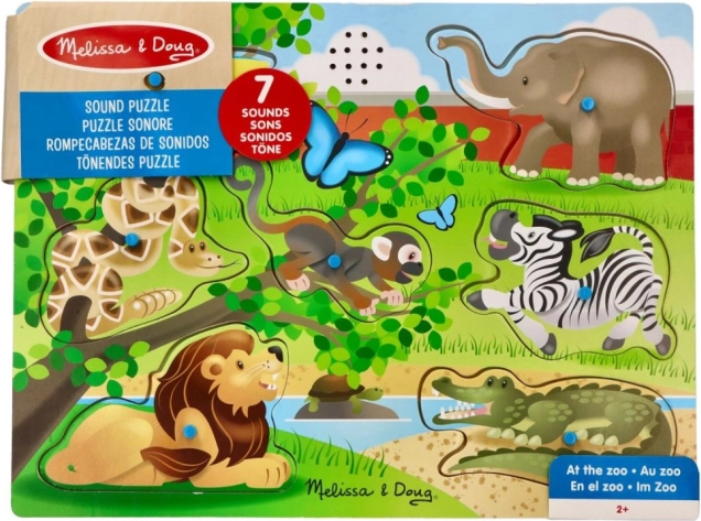 Zvukové puzzle Zvířata ze Zoo je ideálním dárkem pro vaše děti, který kombinuje hraní a učení. S touto zábavnou hračkou děti objeví zvuky různých zvířat: od lvů po slony.