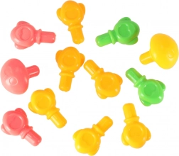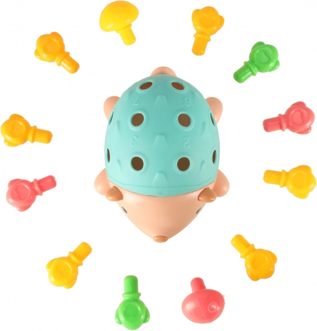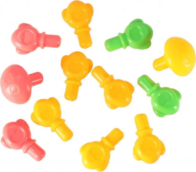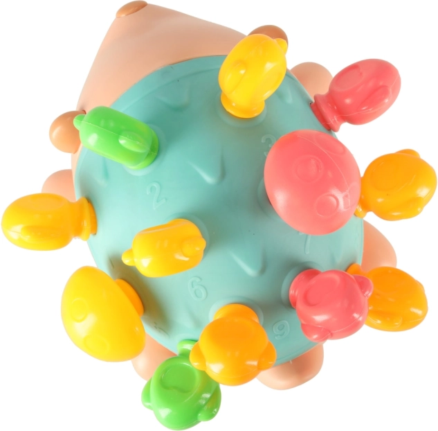 Pestré kolíčky podporují rozpoznávání barev a třídění. Na některých otvorech jsou číslice, což motivuje k prvním pokusům o počítání.