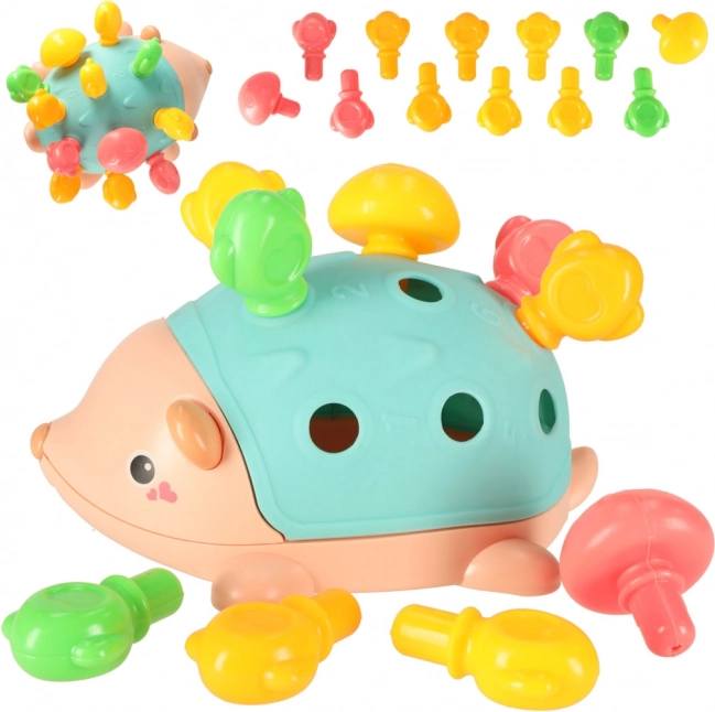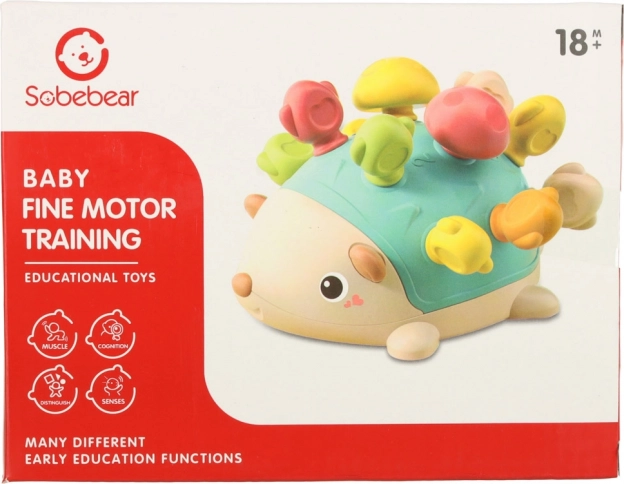 Tento smyslový ježek v pojetí Montessori je jednoduchá, ale promyšlená vzdělávací hračka. Zasouvání a vyjímání barevných kolíčků přirozeně rozvíjí úchop, koordinaci oko–ruka i trpělivost a soustředění.