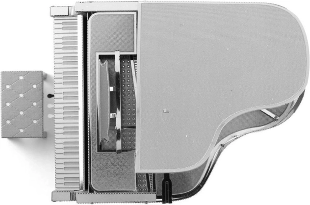 Laserově gravírované díly věrně vykreslují klaviaturu, pedály i povrch klavíru pro výjimečně realistický vzhled.