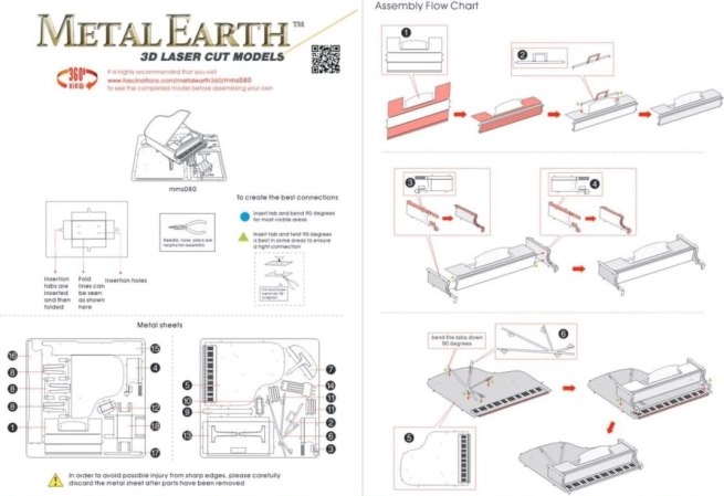 Objevte kouzlo detailů s 3D kovovým modelem klavíru METAL EARTH. Díky laserovému gravírování vyniknou klávesy, pedály i elegantní křivky nástroje. Model je určen pro trpělivé stavitele, kteří si užijí pečlivé ohýbání a zacvakávání drobných dílků do pevných zámků.