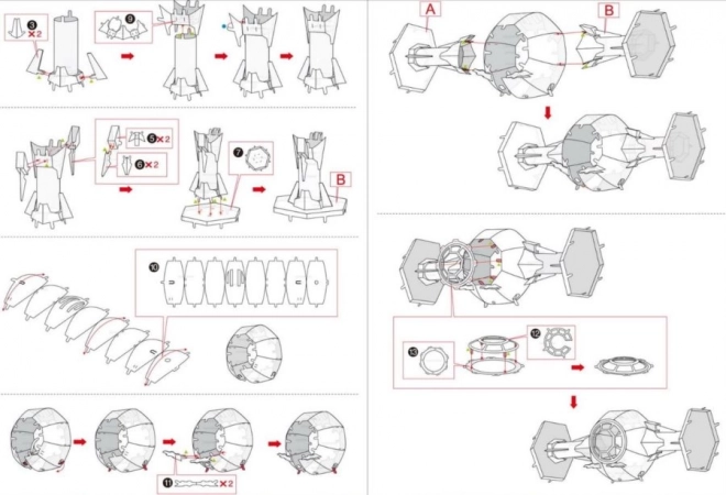 Díly se spojují pomocí zobáčků a otvorů. Stačí malé kleštičky a trpělivost – výsledek je pevný a čistý bez lepidla.