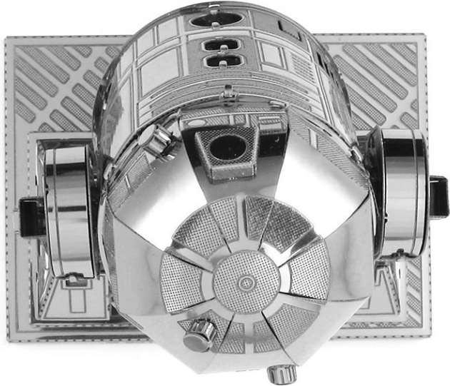 Precizní laser vyryje jemné panely, spoje a textury, takže miniaturní R2‑D2 působí jako filmová replika v měřítku pro vitrínu.