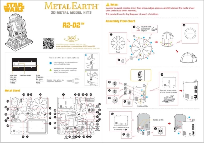 Tento detailně zpracovaný 3D kovový model R2‑D2 ze série Metal Earth se skládá z ocelových plátků, ze kterých vytvarujete realistickou miniaturu ikonického droida. Konstrukce bez lepidla využívá chytré zámky s ohýbacími jazýčky, takže výsledkem je pevný a elegantní model s autentickým vzhledem.