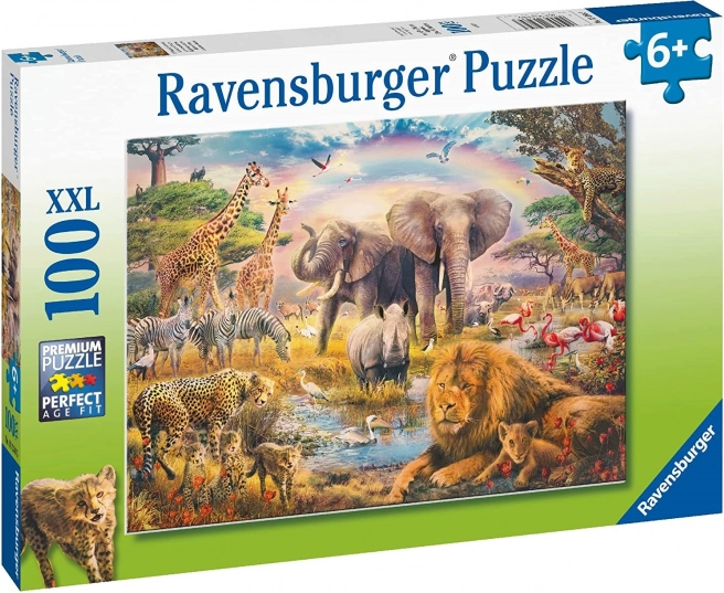 Objevte kouzlo divočiny s dětským puzzle Ravensburger African Safari o 100 dílcích – kvalitní zábava pro děti od 7 let, která rozvíjí logické myšlení, trpělivost a kreativitu.