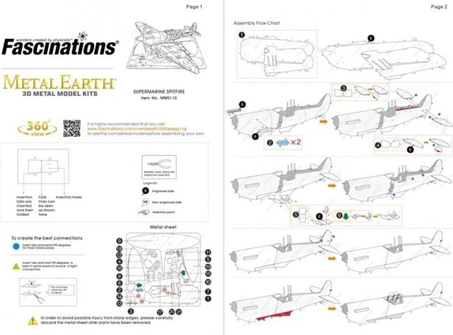 Hotový model je nejen ozdobou, ale i připomínkou významné historické éry, kdy Spitfire hrál klíčovou roli v bitvě o Británii. Je ideální pro sběratele a vášnivé modeláře, kteří si přejí vlastnit kousek historie. Součástí balení je ocelový plátek s dílky a návodem, nicméně potřebné nářadí není součástí balení.