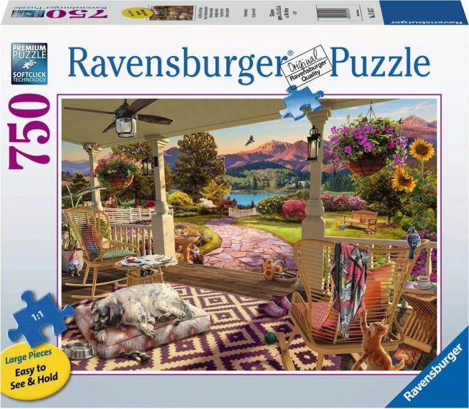 Objevte radost skládačky s puzzle Ravensburger útulná veranda. Extra velké dílky usnadňují skládání a zajišťují příjemný herní zážitek.