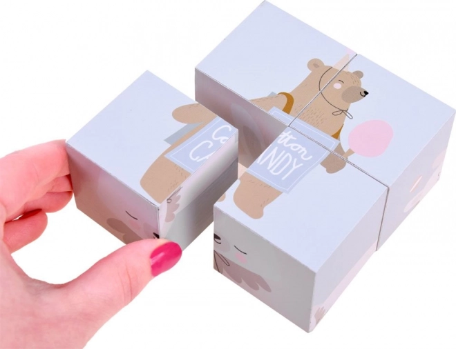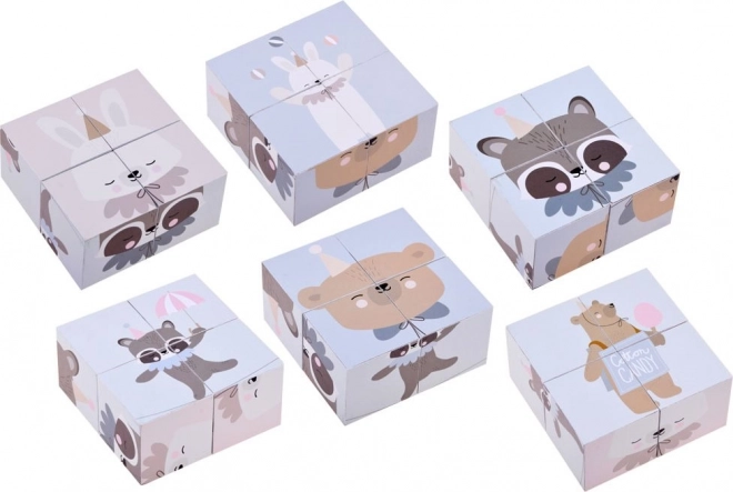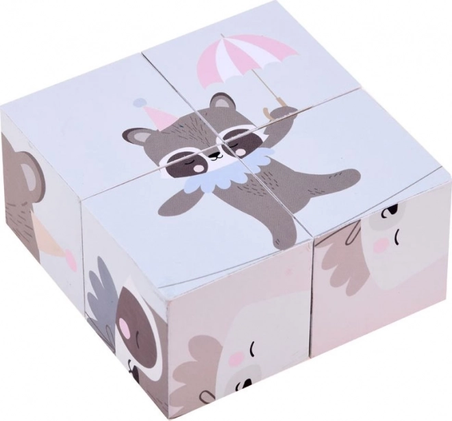 Dřevěné puzzle kostky se zvířátky