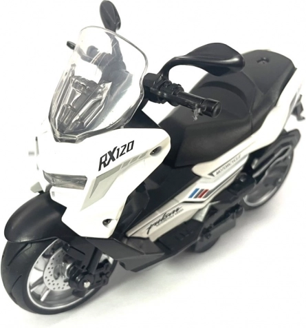 Objevte kouzlo malého, ale detailně zpracovaného modelu motorky RX120, které je skvělé jak pro sběratele, tak i pro děti ke hraní. Díky svým reálným prvkům vypadá jako skutečný motocykl: od sedla, přes řídítka, až po pohyblivá kola.