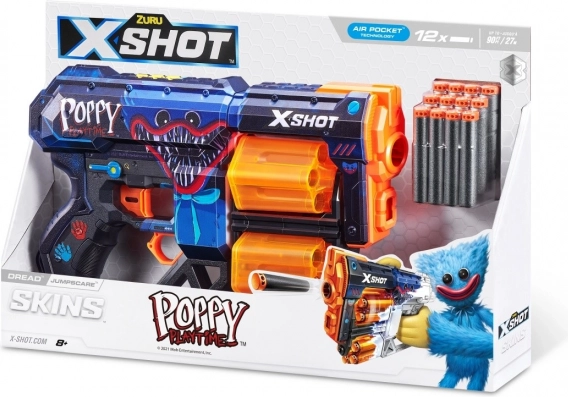 Blaster X-SHOT Skins Dread Jumpscare přináší zábavu na maximum. Lehká a odolná konstrukce, výrazná grafika a intuitivní nabíjení dělají z této pistole ideální volbu pro rychlé souboje doma i venku. Otočný buben umožní plynulé vystřelování šipek po sobě a zaručí tempo, které udáváte vy.