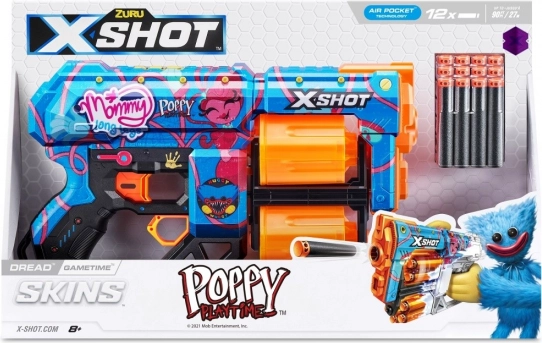 Vstupte do světa Poppy Playtime s blasterem X-Shot Skins Dread. Výkonný mechanický systém vystřelí pěnové šipky plynule za sebou, zatímco průhledná komora a otočný bubínek usnadňují přehled o munici. Lehká konstrukce, protiskluzová rukojeť a intuitivní spoušť zajišťují přesné a pohodlné ovládání.