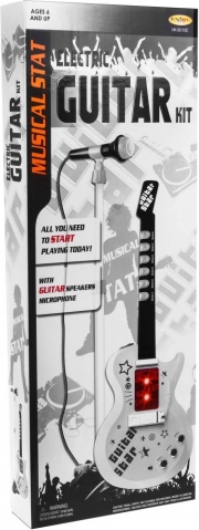 - Elektrická kytara s nastavitelným popruhem, mikrofon, výškově nastavitelný stojan (2 úrovně), kabel MP3