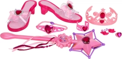 Obsahuje tiáru, náramky, prsten, náušnice a magickou hůlku. Všechny předměty jsou zdobeny červenými srdcovými šperky, ideální pro imaginativní hru.