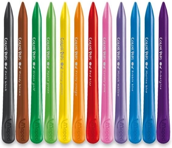 Pastelky MAPED Color'Peps PlastiClean jsou navrženy pro pohodlné a čisté kreslení. Trojhranný tvar zajišťuje jistý úchop a kontrolu nad čarou, zatímco dvojí zakončení umožní kreslit detaily i rychle vybarvovat větší plochy. Díky speciálnímu složení nezanechávají stopy na rukou a snadno se ořezávají.