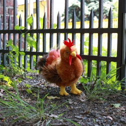 Jemné šití, výrazný hřebínek, barevný ocas a věrné proporce dělají z kohouta krásnou plyšovou hračku i dekoraci.