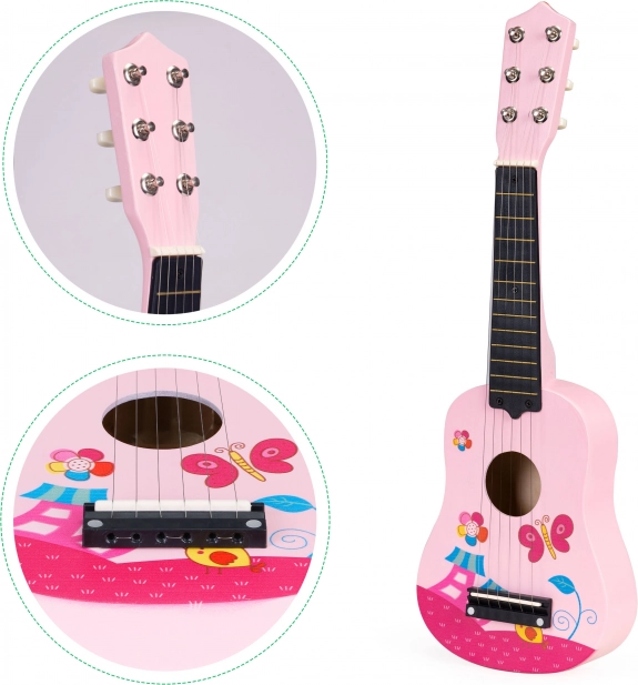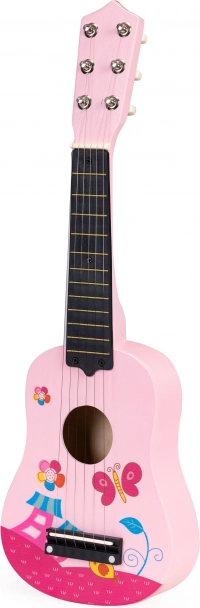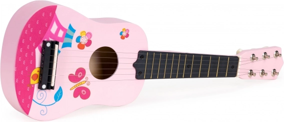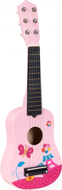 Dětská růžová dřevěná kytara s kovovými strunami ECOTOYS