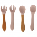 - Bezpečné materiály: potravinářský silikon bez BPA, části příborů s dřevem