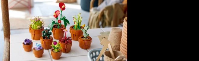 LEGO Icons Malé Rostlinky je perfektní řešení pro milovníky rostlin, které si můžete vystavit doma nebo v kanceláři. Set obsahuje devět různých typů rostlin včetně těch pustinných, tropických a masožravých, a každá je umístěna v terakotovém květináči.