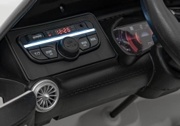Realistické detaily jako otevírací dveře, start tlačítkem s efektem nastartování, svítící LED světla vpředu i vzadu a prémiové AMG prvky potěší malé řidiče i jejich rodiče. Multimediální panel nabízí MP3, USB, AUX, Bluetooth a FM rádio, nechybí zvuky na volantu a ukazatel nabití baterie.