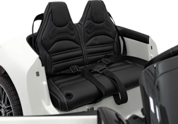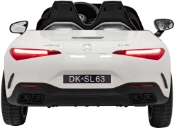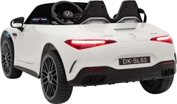 Mercedes‑Benz AMG SL63 pro děti je stylový kabriolet s důrazem na bezpečí i komfort. Díky funkci plynulého rozjezdu, zadním tlumičům a průchodnosti zvýšené světlou výškou 10 cm je jízda plynulá a stabilní. Ovládání je možné jak dítětem pedálem a volantem, tak rodičem přes dálkový ovladač 2,4 GHz se třemi rychlostmi a okamžitým zastavením.