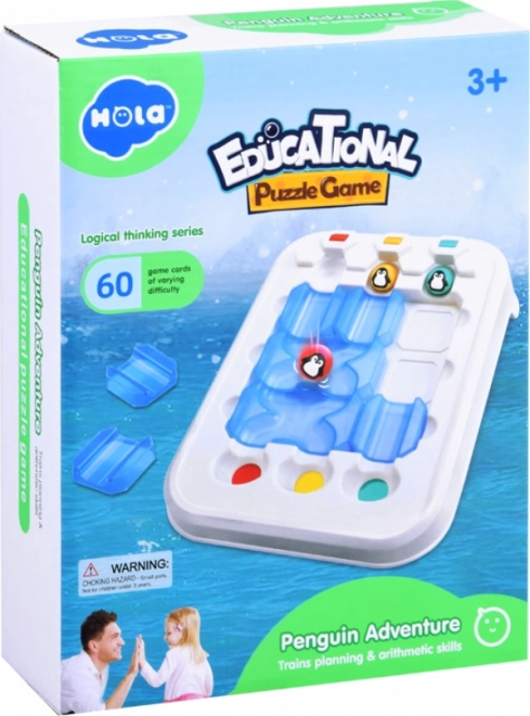 Hra Tučňákovo dobrodružství je určená pro malé hlavičky, které milují výzvy. Děti se mohou těšit na 60 úkolů, které jsou rozdělené dle obtížnosti - označené barvami a hvězdičkami. Hru lze jednoduše nastavit podle přiloženého zadání, a to umístěním dílků a tučňáků na hrací plochu. Poté je na mladých hráčích, aby trasu tučňáků uspořádaly, tak aby každá kulička skončila ve správném otvoru. Nedovoluje se měnit dílky během hry, což dělá hru ještě více napínavou.