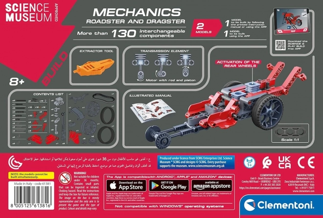 Tato stavebnice z řady CLEMENTONI SCIENCE & PLAY uvede děti do světa mechaniky a inženýrství. Postavte svižný roadster nebo výkonný dragster a poznejte, jak fungují převody, ojnice, písty a převodové moduly. Díky přesnému propojení dílků si užijete robustní konstrukce i plynulý pohyb modelů.