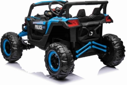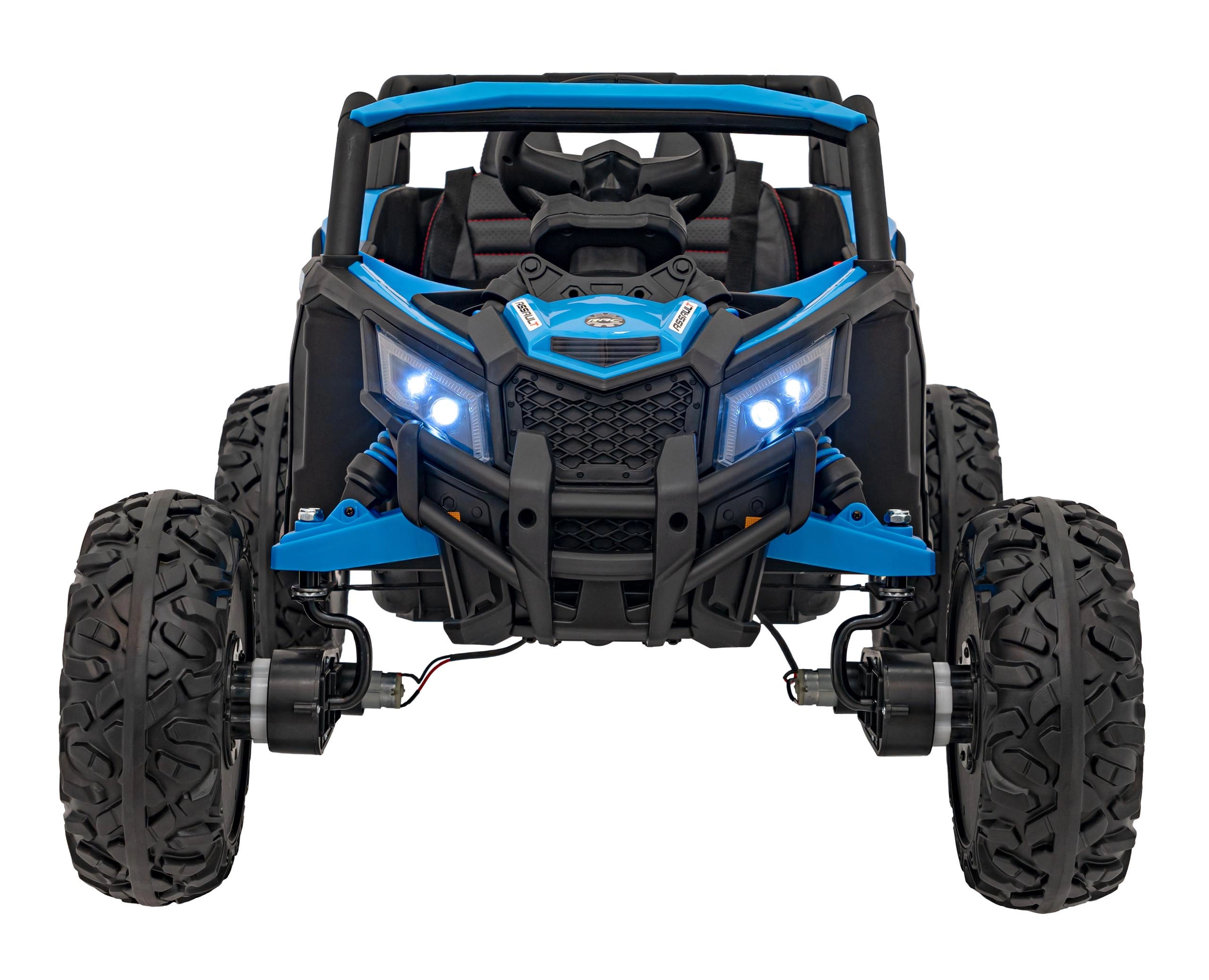 Dobrodružství začíná! Dětské elektrické auto Buggy ATV DEFEND 4x4 v modré barvě nabízí silný pohon 4x35 W, akumulátor 12 V 10 Ah a pohodlná EVA kola pro hladkou jízdu. Rodičovský dálkový ovladač 2,4 GHz se záchranným tlačítkem Stop, realistické LED světla, plynulý rozjezd a audio panel s MP3/USB/Bluetooth zaručí bezpečnou a zábavnou jízdu. Sedátko z ekokůže s bezpečnostními pásy a otevírací dveře podtrhují prémiový zážitek.