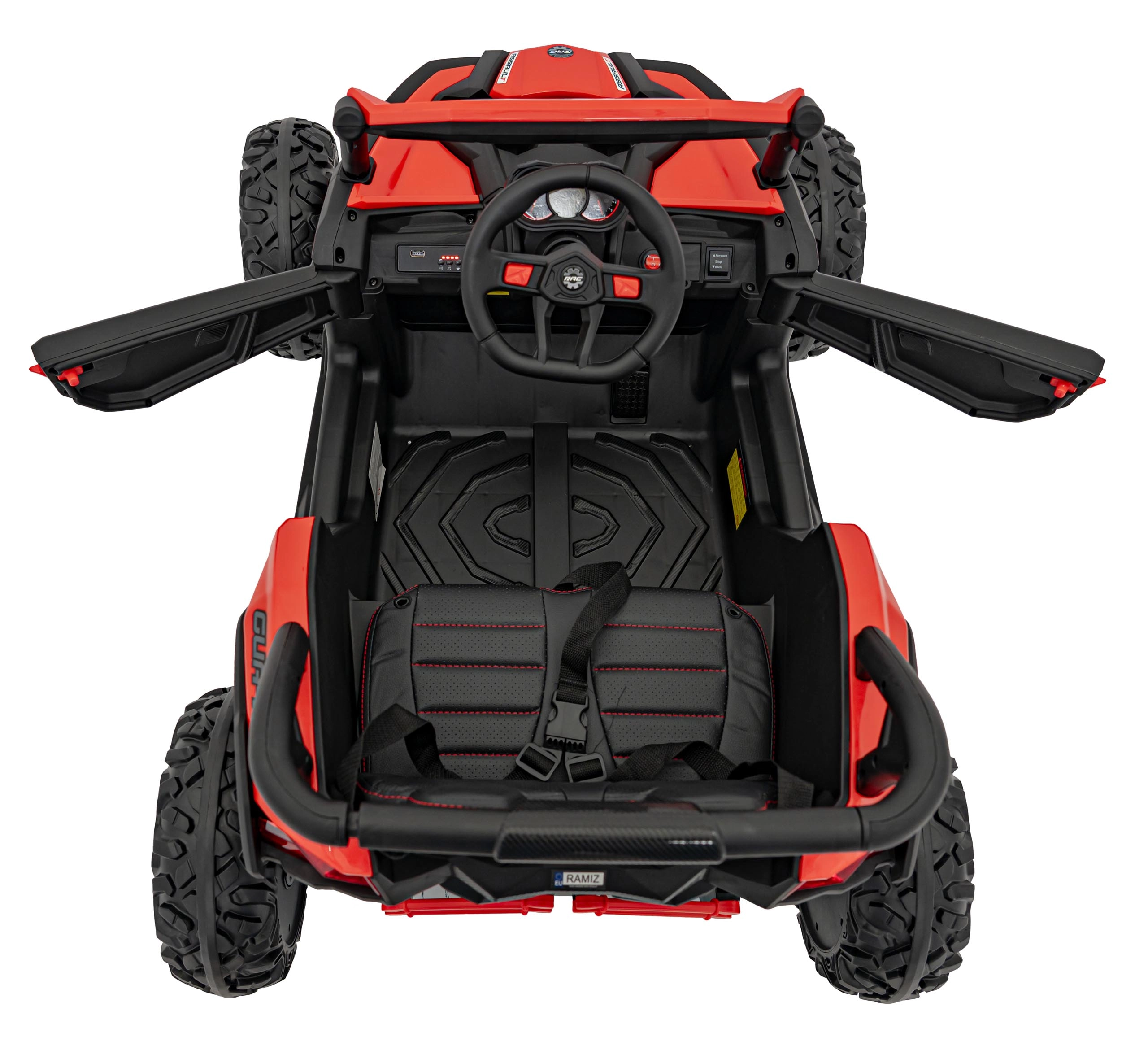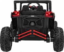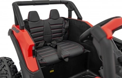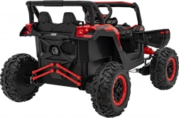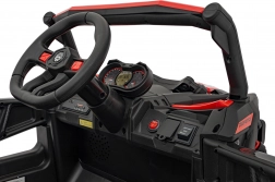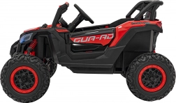 Tento červený terénní vůz pro děti je stvořen pro dobrodružství na zahradě i na nezpevněných cestách. Kombinace pohonu 4x4, čtyř motorů 4×35 W a měkkých EVA kol zajišťuje skvělý záběr, tichý provoz a stabilitu. Zadní tlumiče vyhlazují nerovnosti a světlá výška 20 cm pomáhá překonat menší překážky.