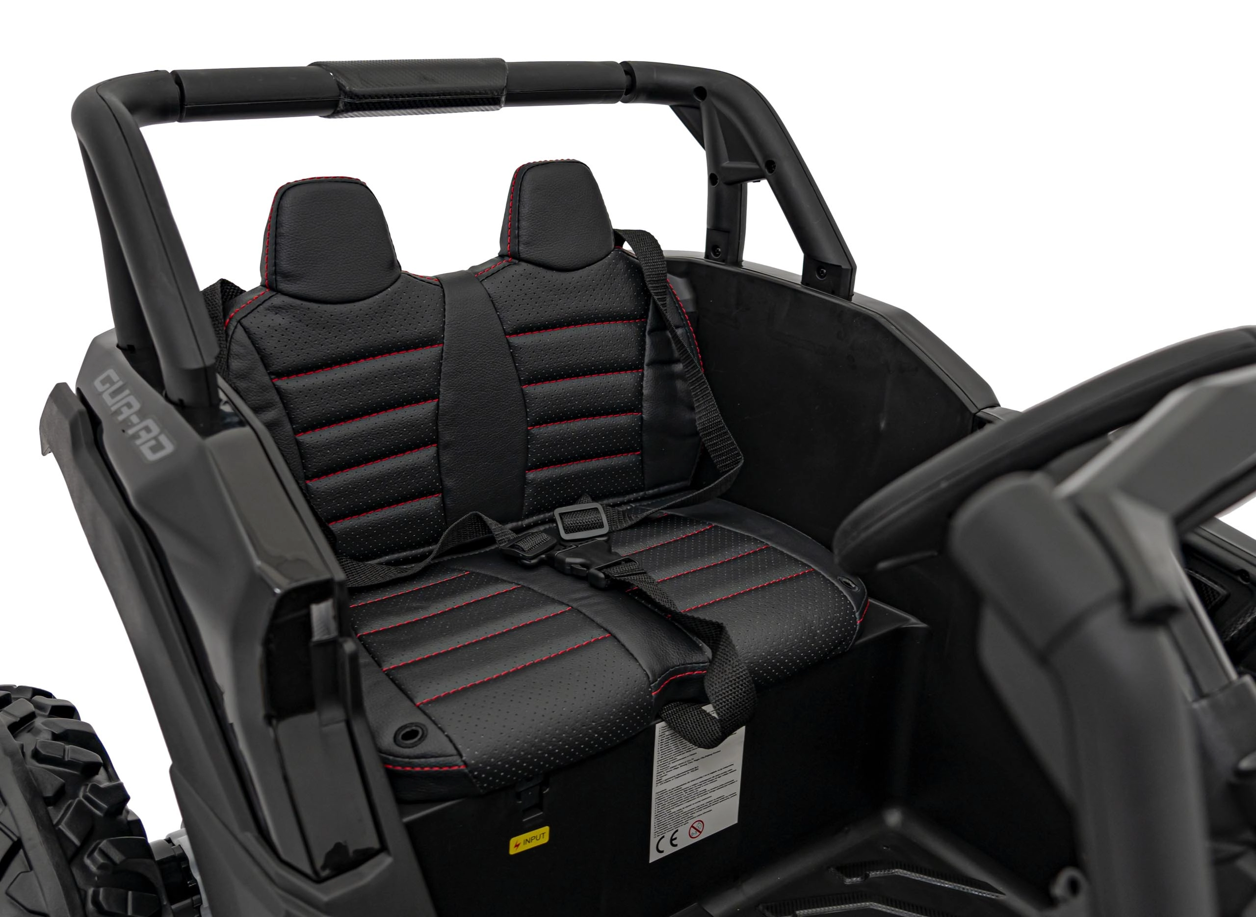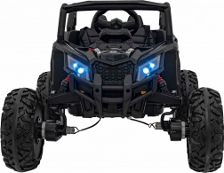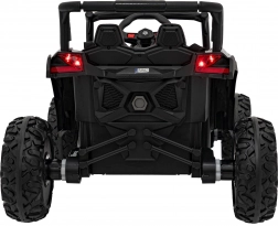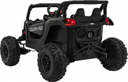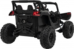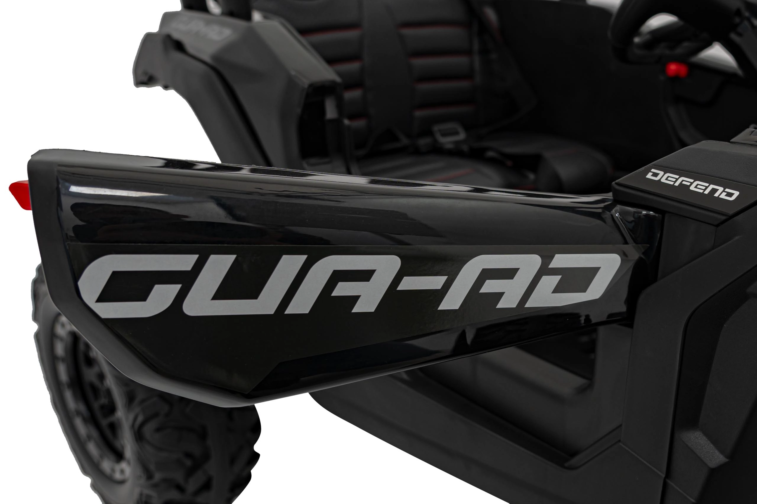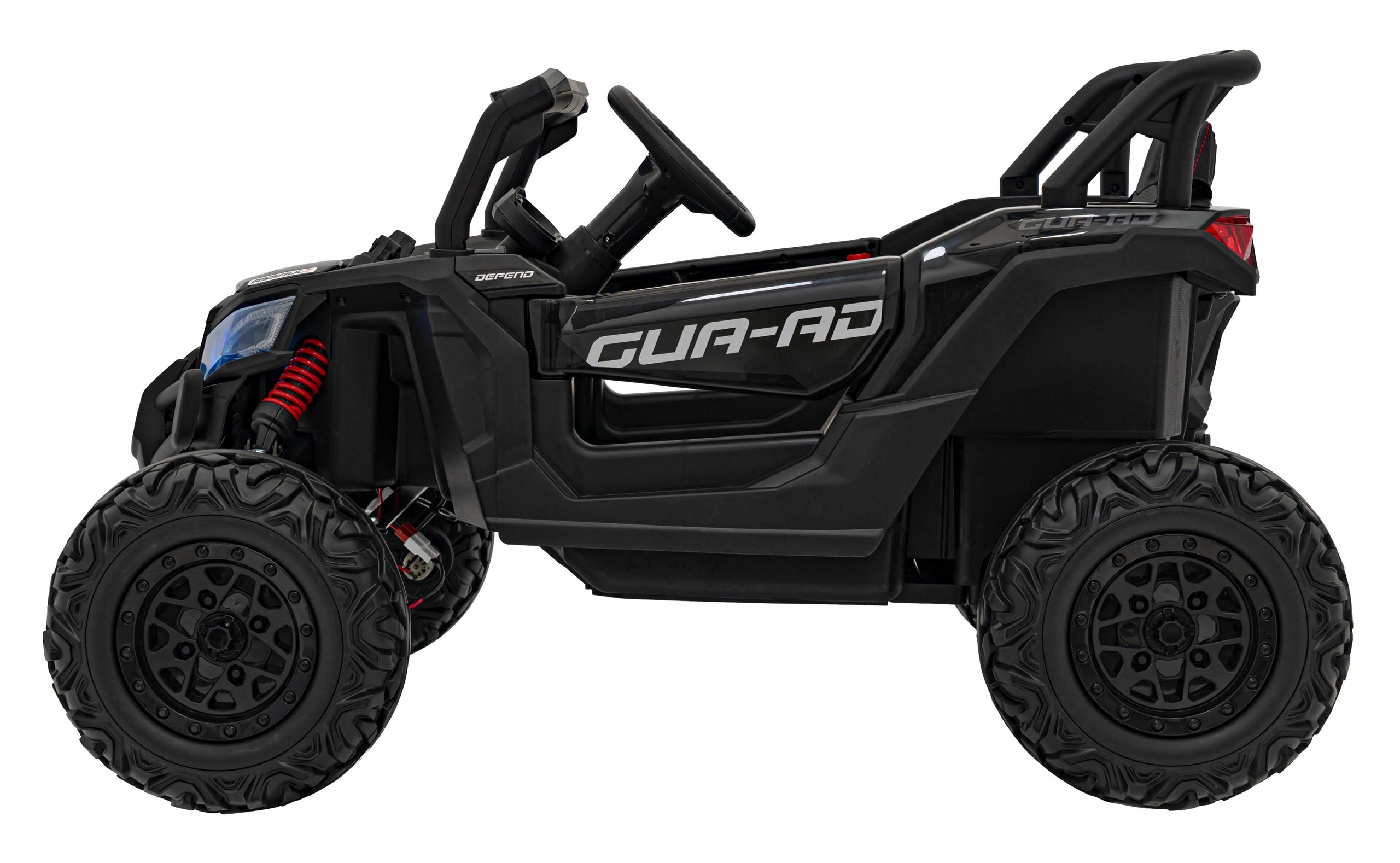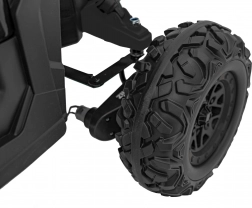 Černé elektrické autíčko buggy ATV DEFEND kombinuje atraktivní UTV design s jistotou stability, trakce a komfortu. Měkká EVA kola 30×11 cm s viditelným odpružením vzadu skvěle tlumí nerovnosti a plynulý start chrání malé jezdce před cuknutím. Sedadlo z ekokůže s bezpečnostními pásy a otevírací dveře usnadní nastupování a zvýší bezpečí.