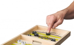 Tato zábavná stolní hra přináší jednoduchá pravidla a dynamickou hratelnost. Hrací deska s gumičkami na obou stranách odpaluje žetony skrz centrální otvor – vyhrává ten, kdo nejrychleji pošle všechny své žetony na plochu protihráče. Skvělá volba pro děti i dospělé.
